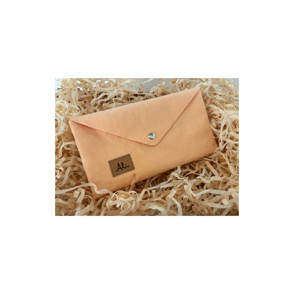 Peněženka Otýlie je vyrobena z Kraft Texu (pratelná celulóza). Originální designový vzor Vás nadechne. Kraft tex, který je označován jako ECO materiál, je vyroben ze dřeva a má vynikající užitné vlastnosti. Vyrábíme v různých barevných provedeních. Otýlie je originální a praktická současně, můžete použít i jako malé psaníčko do ruky na letní party nebo rozzářit outfit do divadla. Využijete k uložení jak finančních prostředků tak i různých platebních karet, vstupenek či dokumentů, které potřebujete mít u sebe. Vejde se i menší mobil.
