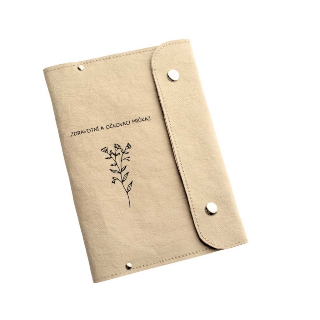 Obal na zdravotní a očkovací průkaz je vyroben z pratelného papíru ( Eko materiál, udržitelná móda), do vnitřního prostoru můžete vložit očkovací průkaz i další zdravotní dokumentaci. Je zde kapsička k uložení kartičky zdravotní pojišťovny. Všechno bezpečně uzavřete malou klopou na dva spínací nýtky.