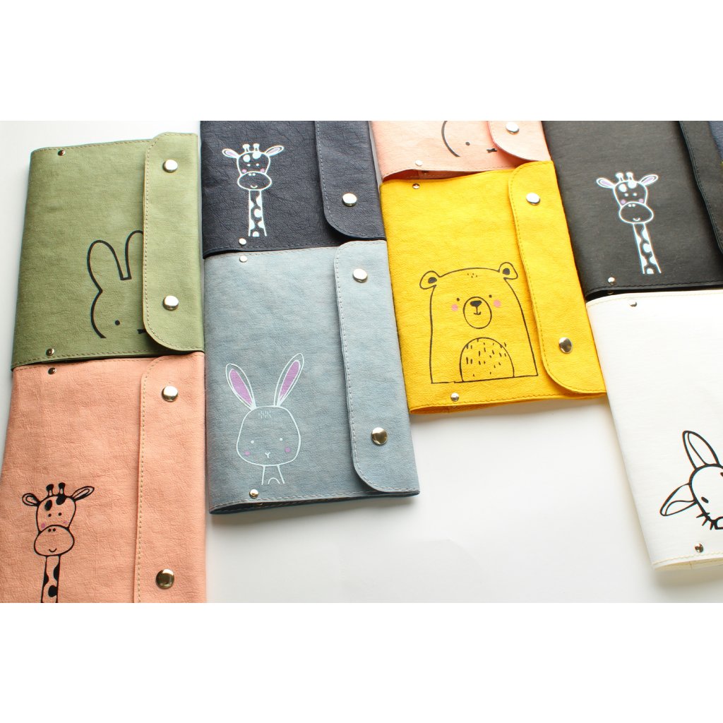 Obal na zdravotní a očkovací průkaz je vyroben z pratelného papíru ( Eko materiál, udržitelná móda), do vnitřního prostoru můžete vložit očkovací průkaz i další zdravotní dokumentaci. Je zde kapsička k uložení kartičky zdravotní pojišťovny. Všechno bezpečně uzavřete malou klopou na dva spínací nýtky.