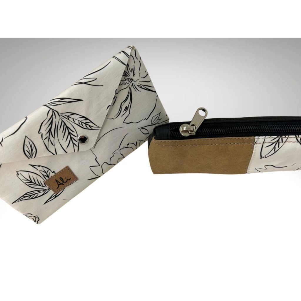 Peněženka Otýlie i pouzdro Lída jsou vyrobeny z Kraft Texu (pratelná celulóza). Peněženka je rozdělena na dvě části, uzavíratelná cvokem, je originální a praktická současně. Můžete ji využít k uložení jak finančních prostředků tak i různých platebních karet či dokumentů které potřebujete mít u sebe, vejde si telefon. Zároveň ji můžete použít jako malé psaníčko do ruky. Pouzdro Lída využijete k uložení psacích potřeb či jakýchkoliv drobností, které potřebujete mít u sebe. Uzavíratelné na zip. Vyrábíme v různých barevných variantách.